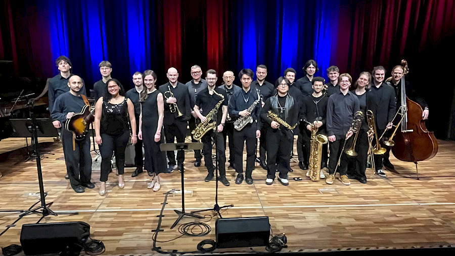 In einer intensiven Arbeitsphase in Hammelburg ist ein brandneues Programm entstanden, das ganz im Zeichen kreativer Energie, maximaler Klangvielfalt und unbändiger Groove-Power steht. Die Big Band der Hochschule für Musik Nürnberg präsentiert neue Musik, geprägt von Fokus, Tiefe und kollektiver Spiellust. Eigene Kompositionen aus dem Kreativpool der Jazz-Kompositionsklasse von Prof. Steffen Schorn treffen auf Widmungen sowie frische, raffinierte Neudeutungen der Musik von Hermeto Pascoal, Peter Herbolzheimer sowie ein überraschender Brückenschlag zu Jacques Offenbach und E. T. A. Hoffmann (250. Geburtstag).